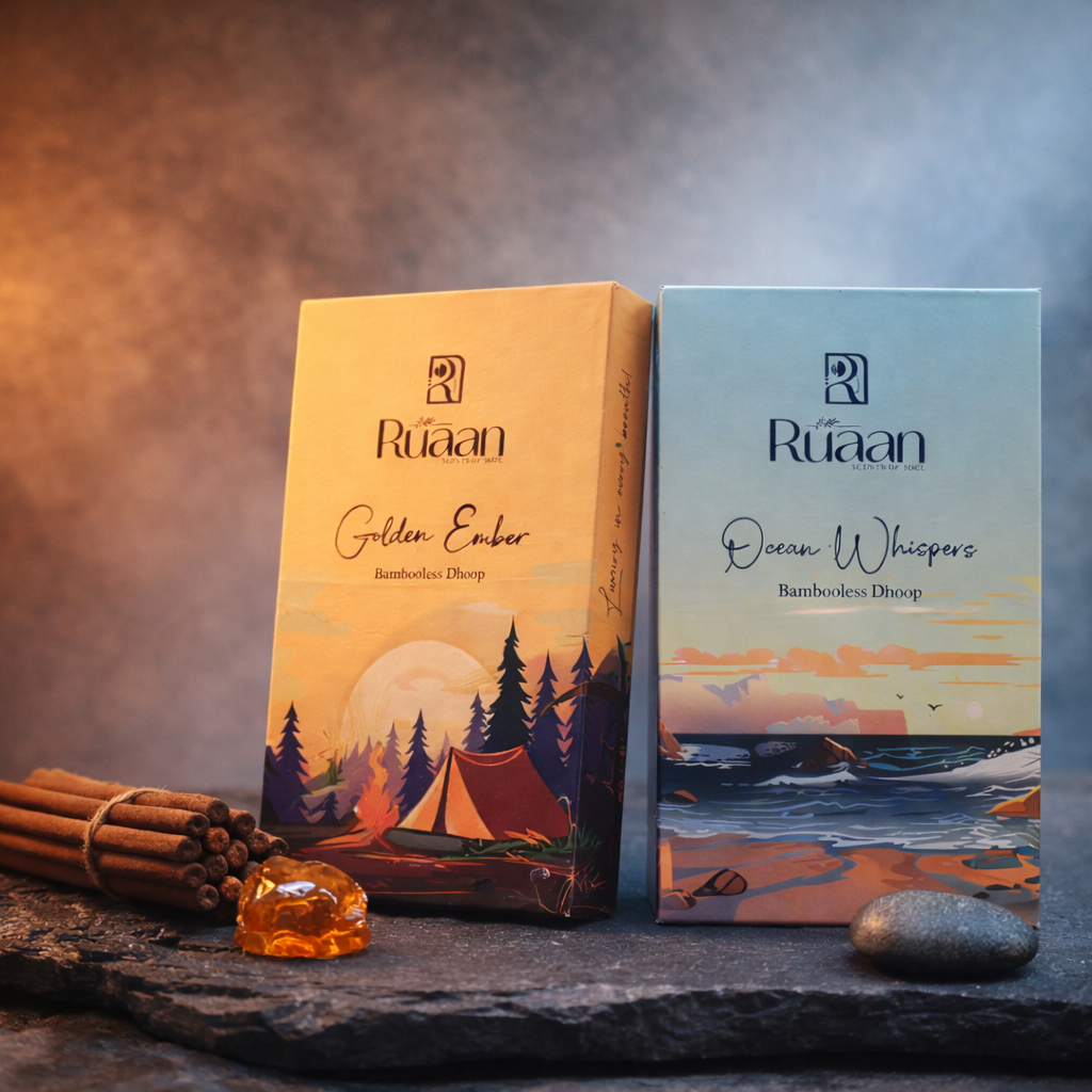Ocean Whispers & Golden Ember Bambooless Dhoop Combo